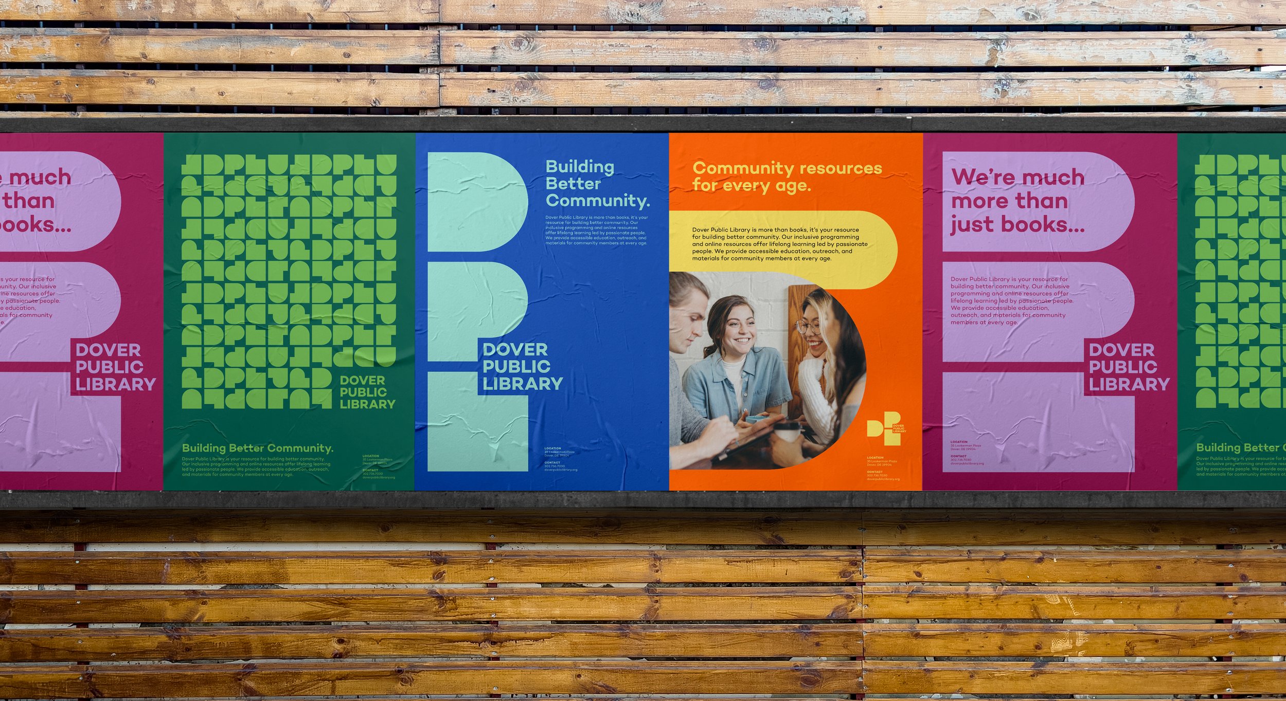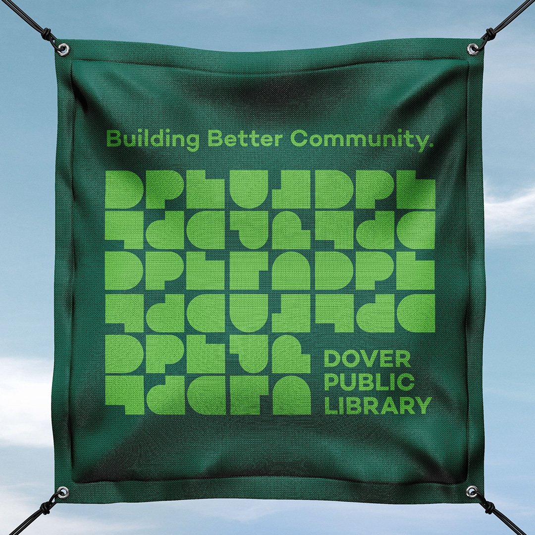 The Dover Public Library brand embodies its mission of fostering a thriving community through education and inclusivity. Our logo, reminiscent of building blocks, can stack, move, and expand, creating an open and inviting space for all. A vibrant color palette with robust shapes complements the logo’s boldness, engaging the library’s younger audience and facilitating easy navigation for all age groups.