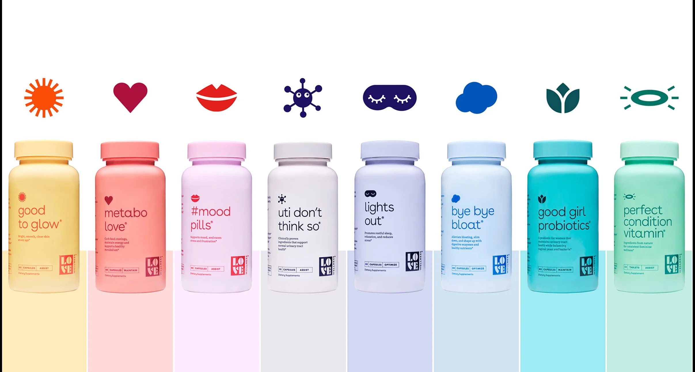 When Lo Bosworth created Love Wellness, the mission was clear: make over-the-counter, all-natural support for common women’s health issues feel approachable, easy to understand, and actually nice to buy. The original design blended into the aisle. The rebrand brought the “love” back to the front, while sharpening hierarchy so shoppers can find what they need fast and without shame.