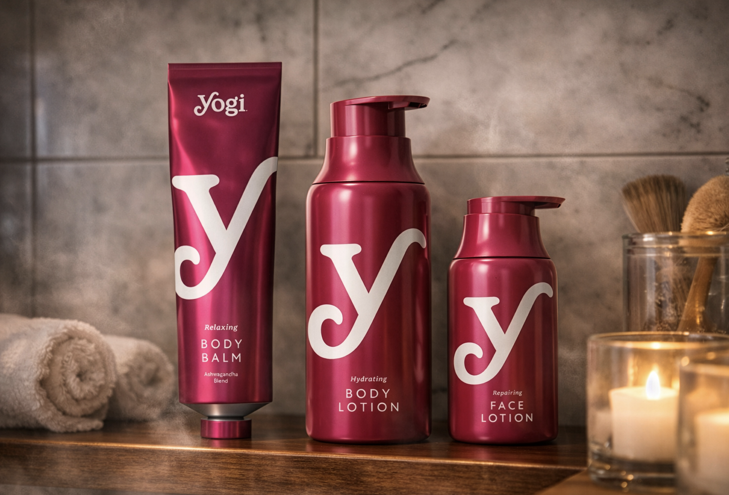 Visually, we redesigned the Yogi wordmark by returning to its origins. The new logo draws directly from the original 1970s lettering, refining its forms to feel calm, approachable, and contemporary. Subtle typographic details, including relaxed letterforms and a custom double-story βg,β reinforce a sense of connection and warmth. A unified color system led by Yogi Royal Red anchors the brand globally, supported by gold and cream tones that feel rich, grounded, and inviting across shelves and screens.